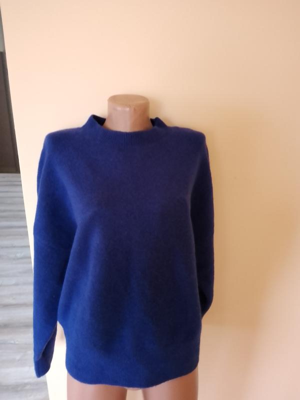 Теплый свитер синего цвета известного бренда. Размер М. Длина 66 см, рукав от горловины 77 см, от подмышки до подмышки 68 см