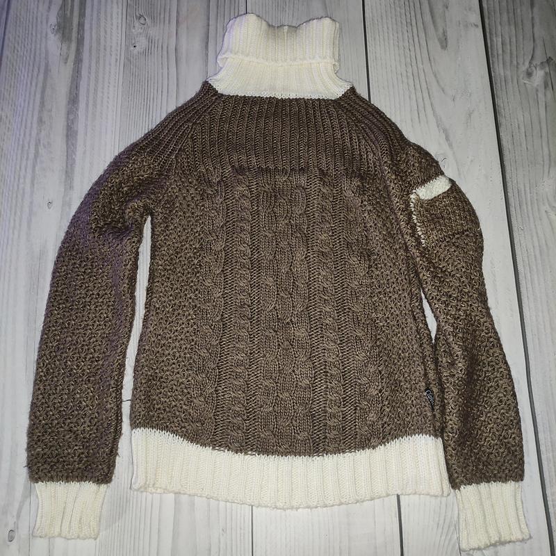 свитер,гольф Турция в хорошем состоянии средней плотности вязка.нить мягкая 85 акрил,15 полиамид.длина 62,рукав от горловины 70 см,в груди 40,талия 38,низ 44.размер примерно S-M.может есть пару затяжек небольших ниток,можно вытянуть на изнанку. смотрите другие мои объявления