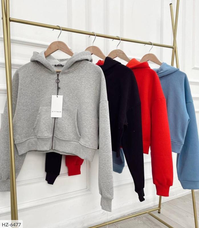 Кофта HZ-6471 Мод. 326 Размеры: 42-46 Ткань: трехнитка Цвета: - белый - белый меланж - серый меланж - цемент(пепельный) - темно-синий - черный - красный - голубой - беж - шоколад Длина 55см