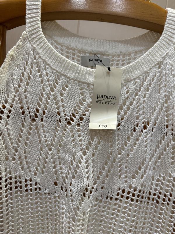 В наличии красивая кофточка фирмы PAPAYA. Размер указан 16, но немного маломерит и по замерам больше идёт на 14. Состав: 100% акрил...нитка очень мягкая и приятная к телу, хорошо тянется. ПОГ-54+ещё тянется, длина-60, длина рукава-48, ширина по низу-57+ещё тянется.