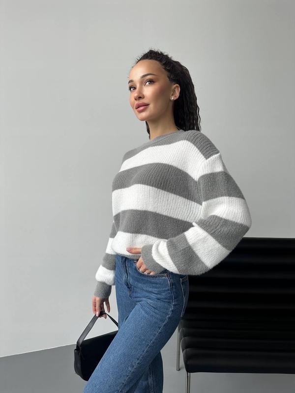🔳НОВАЯ КОЛЛЕКЦИЯ 🔳 Стильный кашемировый свитер в полоску Размер оверсайз 42/48 Длина 50/53 см Ширина 55/57 Рукав от горла 65/67 см 3 цвета: черный, серый, беж новая Цена 595 гр код1955(ТШиш)