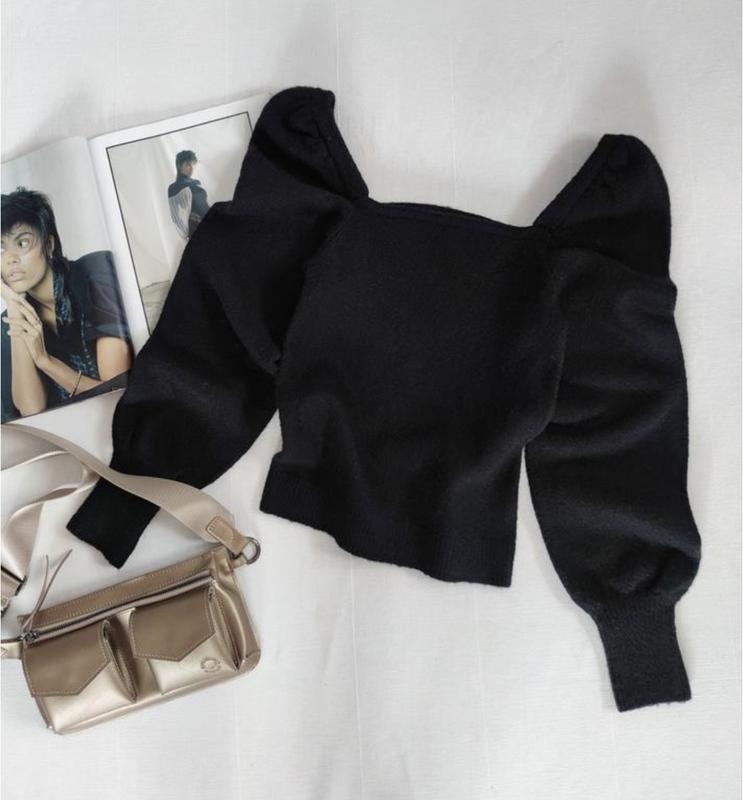 Учерный свитер Н&М с пышными рукавами красиво тянется, ткань мягкая, приятная на ощупь Размер:XS Замеры:ПО груди 33 см, длина 54 см, длина рукава 68 см