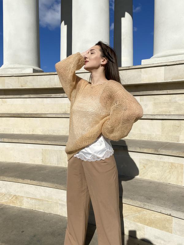 Повітряний, ніжний та легкий светр-павутинка. Його можна носити зі спущеними плечем, з сукнею і під джинси. Універсальна і комфортна річ на будь-який сезон.