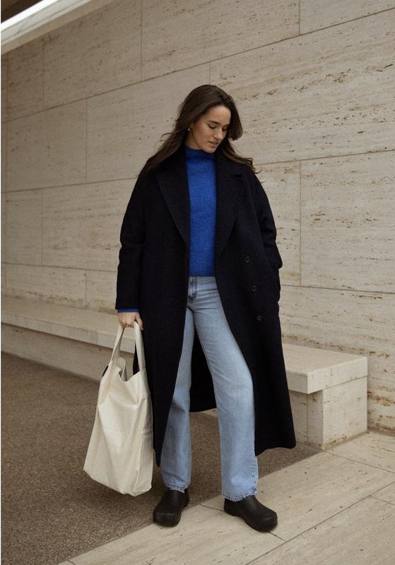 Комфортный объемный свитер насыщенного синего цвета.З черными полосками по вороту, манжетам рукавов и краю низа. Мягкий на ощупь и приятный к телу. Унисекс размер М-Л женский или С-М мужской. Плечi-41 см, довжина-67 см, ПОГ-61 см, низ-45 см. 53%-акрил, 40%-проиамид, 7% шерсть.
