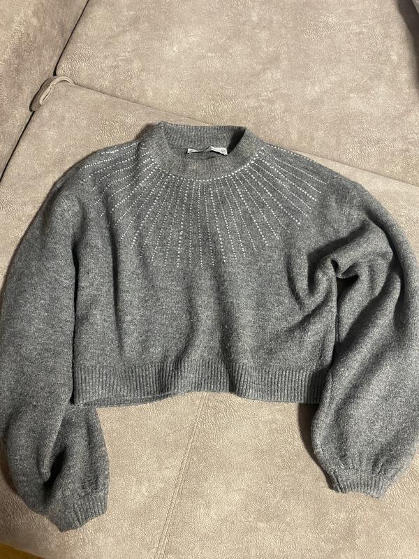 Теплий мягусенький в стразах укорочений светрик