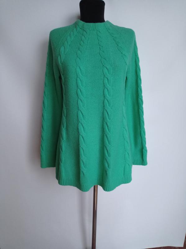 Мягкий приятный на ощупь не колючий красивый цвет, свободного кроя, состояние идеальное. Пог. 45, внизу 57, рукав от начала горловины реглан 72, длина 72.