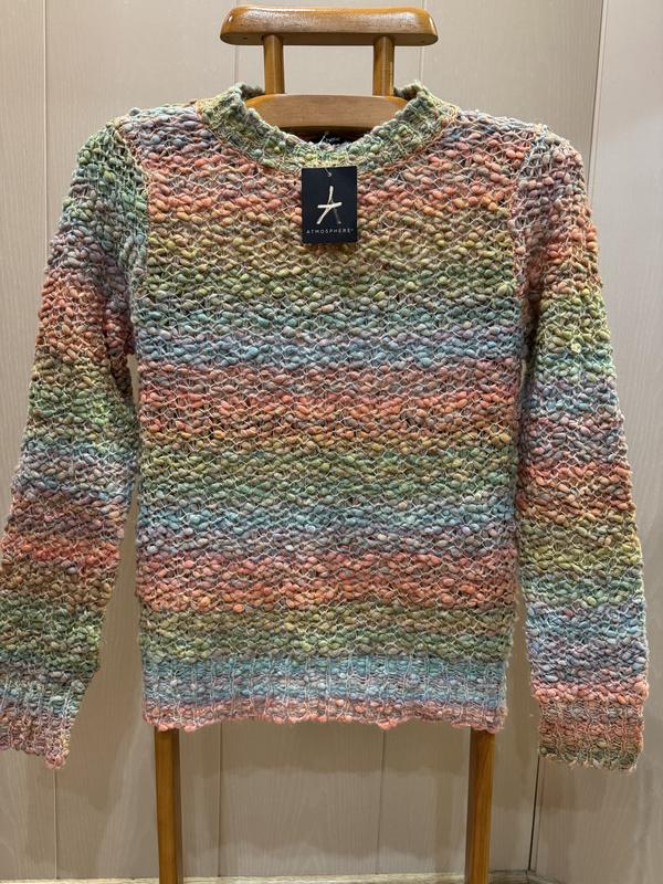 В наличии красивый свитер фирмы ATMOSPHERE. Размер указан 10. Состав: 18% шерсть, 6% альпака, 28% нейлон и 48% акрил...нитка мягкая и приятная к телу, хорошо тянется. ПОГ-50+ещё тянется, длина-60, плечи-38, длина рукава-61, ширина по низу-42+хорошо тянется до 55.