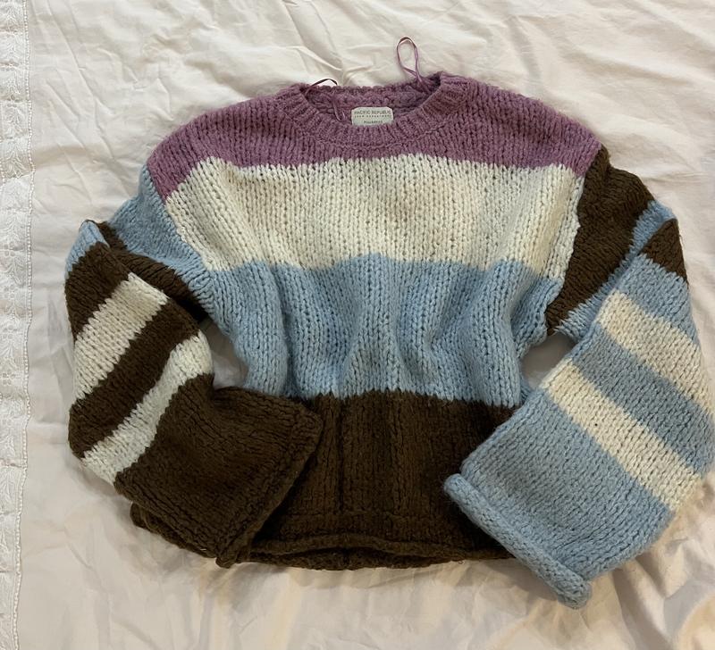 Свитер теплый, вязаный, новый, с широкими рукавами
