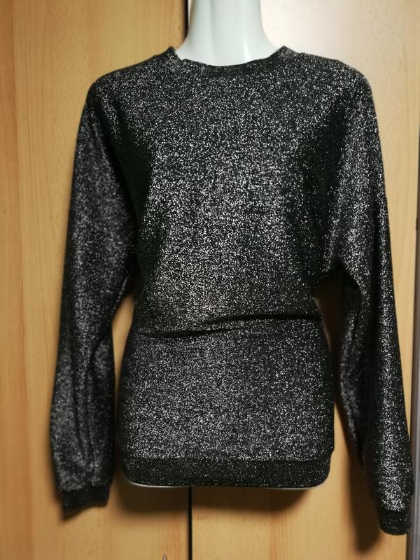 Свитер с блестящей нитью,очень красиво смотрится,состояние нового,размер S,как по мне большемерит,подойдёт на М,L