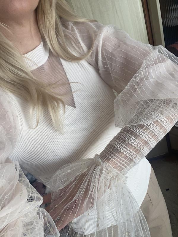 Кофточка в рубчик с объемным рукавом в идеальном состоянии! По бірці S Тележка 65%,полиэстер 35%