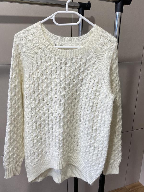 Очень красивый, приятный к телу, в молочном цвете свитер. Пог-53, длина 65/51, рукав 69 от горловины