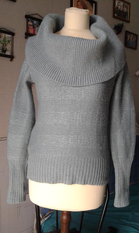 красивый серо-голубой с люрексом джемпер. с шикарным хомутом горловиной.короткий.тёплый оригинальная вязка. примерно р 44-46. приобретался на о Кипр. в употреблении был несколько раз. стал мал и ждал.. в шкафу))) длина примерно 55 см.длина рукава от хомута 65 см( манжет можно подво рачивать 20 см)ПО груди 45 -48 см ПО низ 39=46 есть у меня в объявлениях много разной винтажной одеждя обуви и всякой всячины приобретая несколько вы экономите на пересылке пишите спрашивайте делаю дополнительно фото отвечаю в течении суток