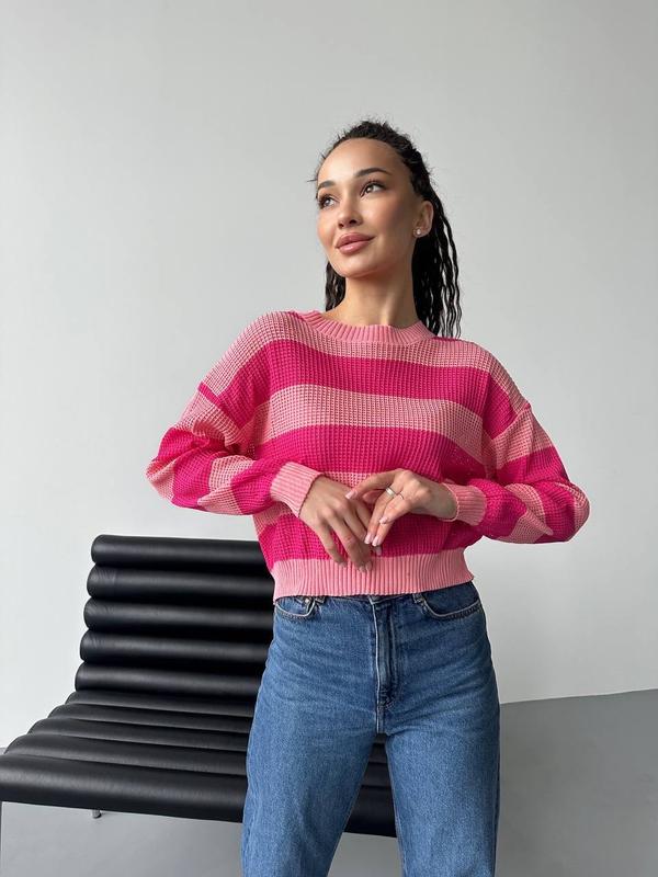 🔳НОВА КОЛЕКЦІЯ 🔳 У кількості!!! Стильний светрик у вафелька смужку Розмір оверсайз 42/48 Ширина 58 Довжина 47 2 кольори: чорний , малина