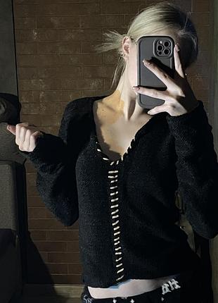 Кофта легкая, но достаточно теплая, приятная к телу, спереди имеет декоративный шнурк) винтажная из 90-х
