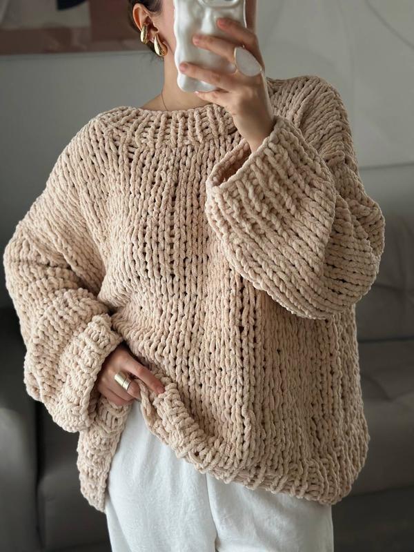 Базовый свитер – теплый и уютный, обладает невероятной нежностью и мягкостью. Вязаный вручную. Классический, вневременной дизайн, ничего лишнего, вы легко сможете вписать его в свой гардероб. Фасон oversize поможет оставаться всегда в расслабленном состоянии, чувствовать комфорт и непринужденность. Пряжа очень мягкая и не колется, является гипоаллергенной. В нашей размерной сетке два размера oversize: 1 размер на рост до 170см, подойдет на XS, S, M 2 размер на рост от 170-178см подойдет на M, L Размер от XL совмещаяся. Если ваш рост выше 178см или ваш размер L, а рост 157см или любые другие комбинации, просто пишите нам, мы проконсультируем.