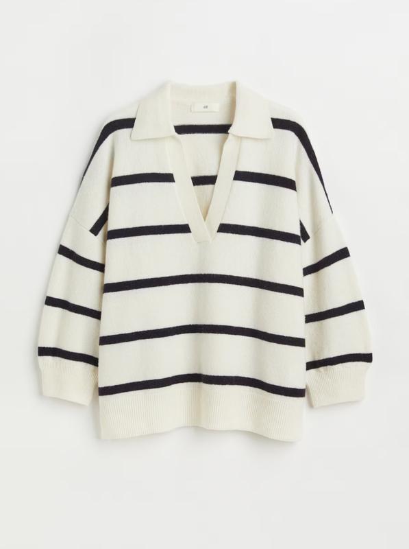 🌿свитер в полоску от H&M с рукавом 3/4, крой свободный, содержит шерсть 14% Размер:М Замеры:ПО груди 64 см, длина 60 см