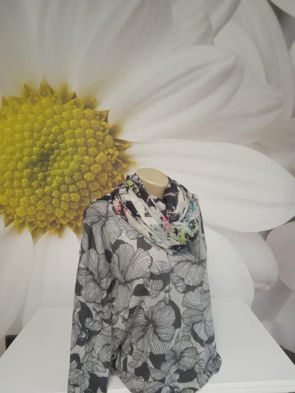 Класична кофточка з довгим рукавом та оригінальним квітковим малюнком. Цікаво поєднані кольори. Легка та зручна. Приємна на дотик. Гладка машинна в'язка. Тонка нитка. Стрейч. Лягає по фігурі. Акуратний виріз. Стильно виглядає з шарфом в тон у комплекті (шарф може бути замінений, але в кольорі). Є розміри.