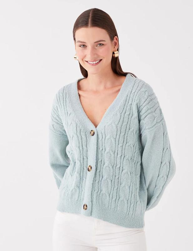 В хорошем состоянии, мягкая и теплая, нежная небесно дымчатый цвет,пуговицы в камушках.За дополнительной информацией обращаться.