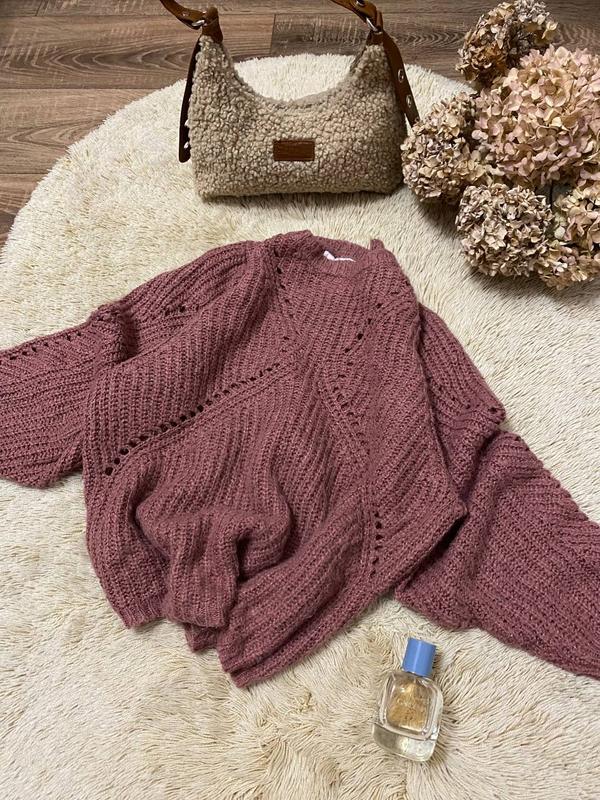светр з об'ємними рукавами розміру S, склад акрил, поліамід та 5% мохеру, недільної в'язки, довжина 57см., півобхват грудей 55см., низ 58см., довжина рукава від горловини 68см. стан ношеного, трішки розтягнутий низ.