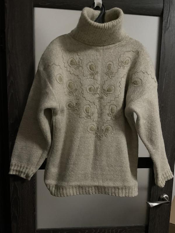 Продам светр жіночий теплий в ідеальному стані, довжина 69 см, довжина рукава 48 см, по грудях 61 см, по стегнах 56 см, висота коміра 26 см. По всім питанням звертайтесь в особисті повідомлення.