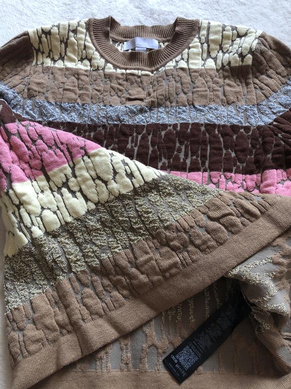 Длина 48 см, полуобхват груди 42-60 см (тянется). Очень красивый фактурный свитер.