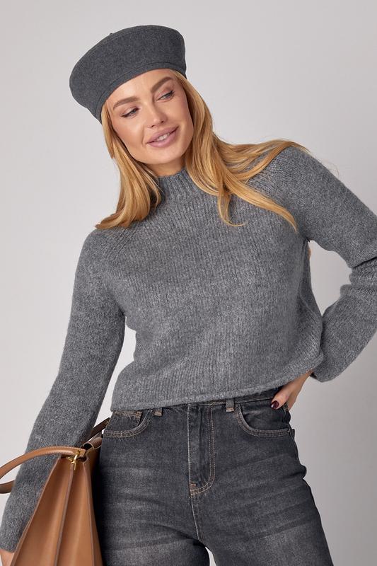 Женский укороченный свитер с рукавами-регланами цвет серый размер s fl_001879