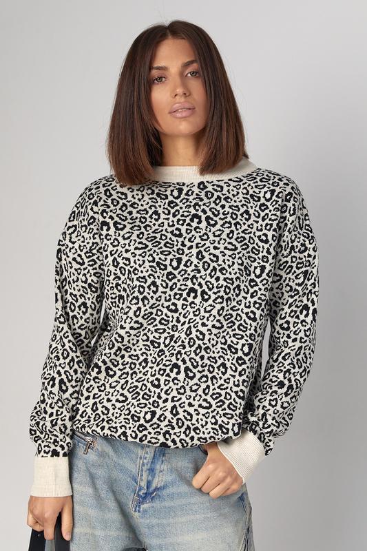 В'язаний жіночий джемпер з леопардовим малюнком - бежевий цвет, one size (є розміри)