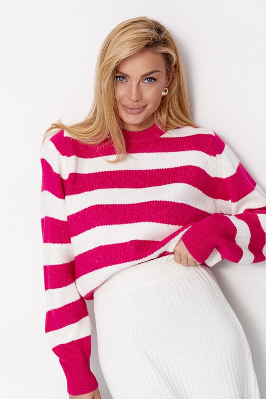 Жіночий в'язаний джемпер в широку полоску - фуксія цвет, one size (є розміри)