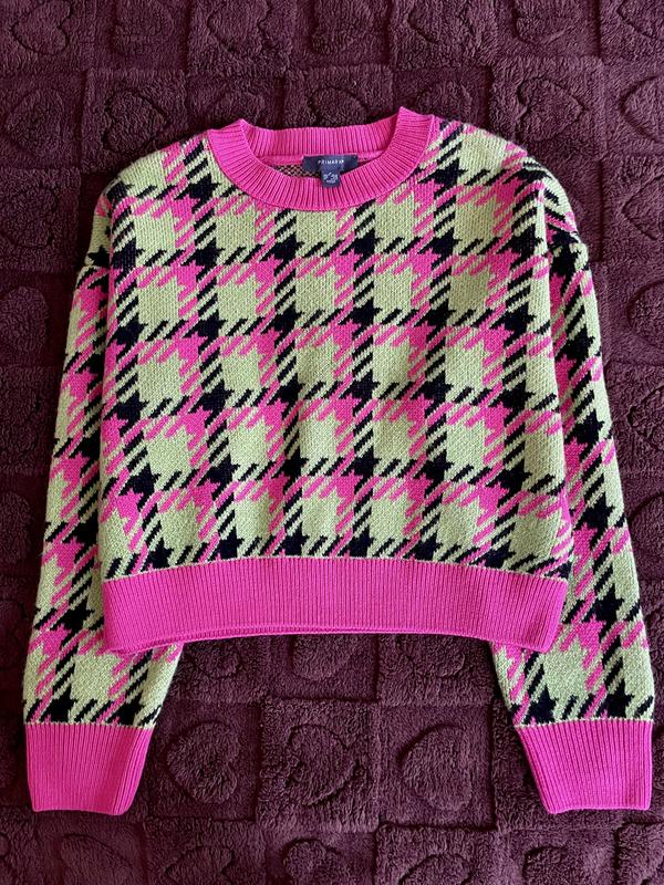 Гарний светр в гусячу лапку. Розмір M-L (планомірний, eur 40/42) Вільного крою з приспущеними плечима Заміри: довжина по спині 52 см, ПОГ 57 см, довжина рукава та плеча 76 см