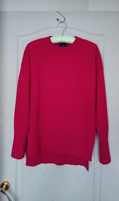 Теплый свитер от CASHMERE Collection. Очень нежный, мягкий, теплый, комфортный свитер. Состав: 50% кашемир, 50% шерсть мериноса. Цвет малиновый. Круглый (двойной) вырез горловины в рубчик. Также ребристые манжеты на рукавах и низ свитера. По бокам разрезы. Перед короче за спинку на 6,5 см. Занижена линия плеча. Свободный крой. Состояние идеальное, без дефектов. Размер указан S. Подойдет и на М. Лучше ориентируйтесь на замеры: Ширина плечи – 56 см ПОГ – 50,5 см Длина по середине спинки – 70 см Длина рукава – 50 см, длина плеча - 23,5 см. Все замеры сделаны без растяжения. Свитер тянется.