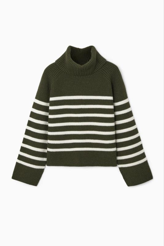 ОВНИТЕЛЬНЫЙ СВОТР COS 💳 3950 ✅ МОЛОЧНЫЙ L -1 ПОГ/шир 64/длин 60/рук от воротника 71 Классический и современный джемпер, из смеси шерсти, сертифицированной RWS, и переработанной шерсти. Он имеет узор в бретонских полосах, имеет широкие рукава реглан и изогнутую горловину с современным разрезом сзади. Обычная посадка Раздельные манжеты 70% шерсти RWS, 30% переработанной шерсти / машинная стирка Длина по спинке размера S 58 см / Модель носит размер S