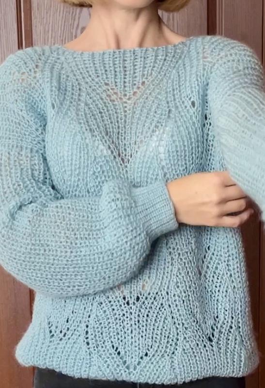 Женский свитер ручной работы. Мягкий, теплый, приятный к телу, не кусающий. Красивый узор. 20% шерсть, 80% акрил. Подходит на размер S-M (42-44 см.)