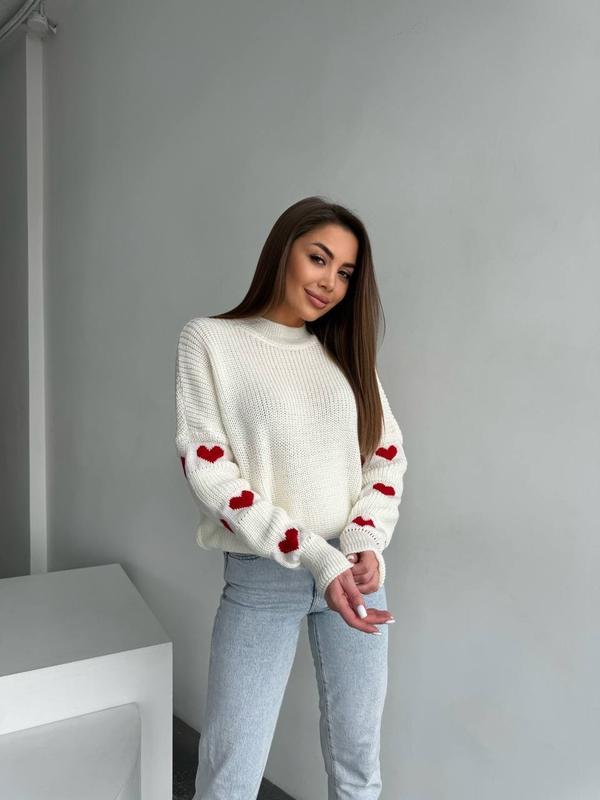 НОВИНКА Светр 💕 Модель:147 Размер: oversize 42/46 Цвета: молоко, красный и черный Пряжа:акрил / шерсть Цена: 770 грн ЗАМІРИ: ПОГ 55 см Длина по спинке:59 см Длина рукава от шва:50 см