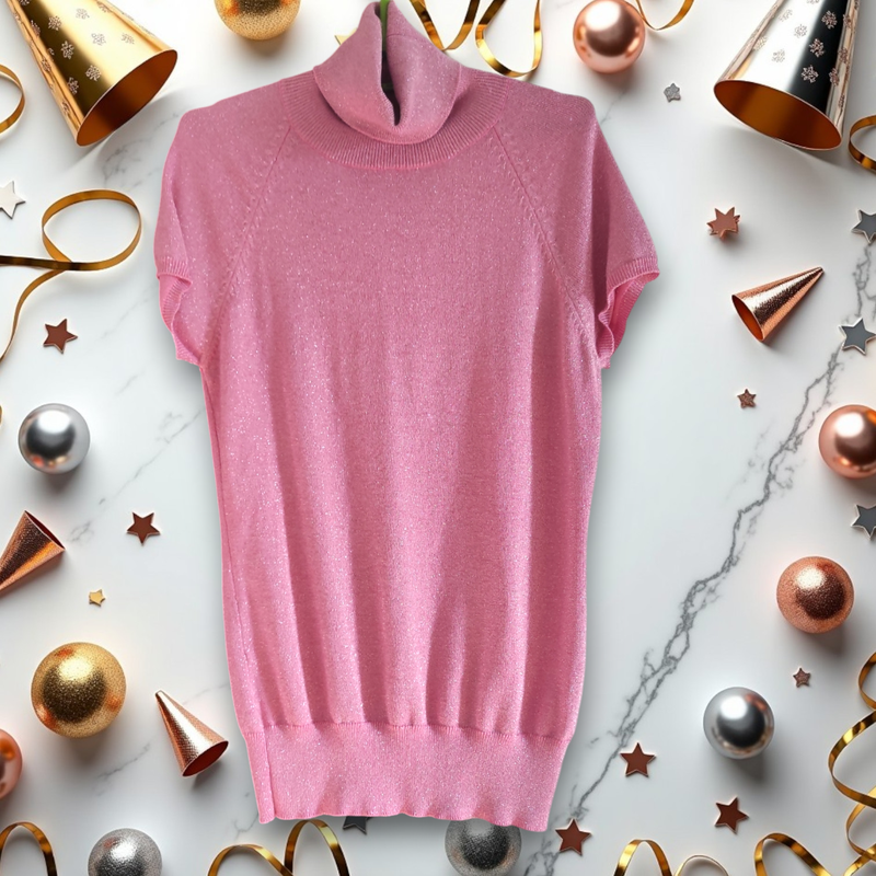 Нарядна кофтинка Свитер с коротким рукавчиком Тоненький, очень красивый, нежно переливается и мерцает, из-за присутствия в составе люрекса. Красиво тянется. Будет на размер XS, S, возможно на стройную М. Замеры: пог 38 см, пот 36 см, пос 27 см, длина 60 см.