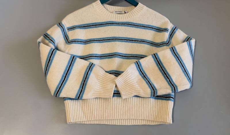 Стильний кроп-топ светр з об'ємними рукавами Weekday Р.S- можна XS-S Довжина по спинці 48 см НОГ 48 см Рукав від коміра 67 см Плечі стильно спущені