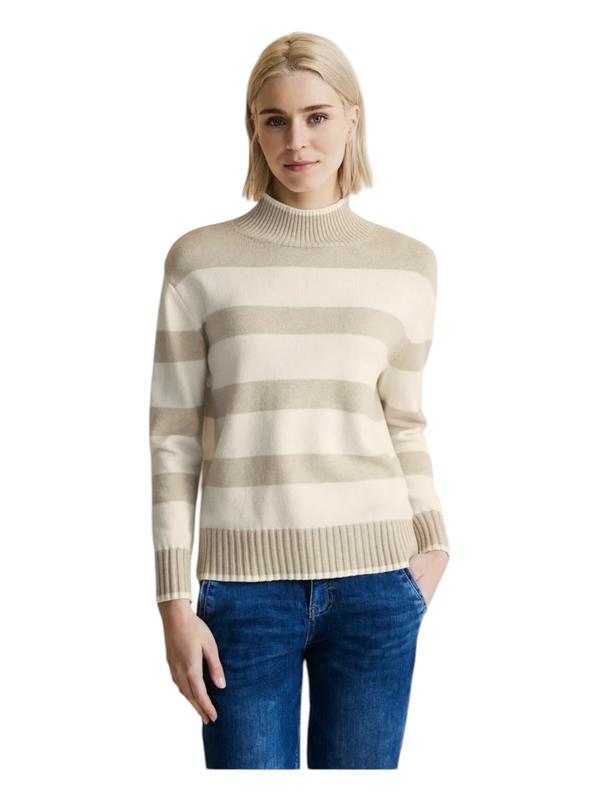Вневременное и элегантное! Женский вязаный свитер от Street One вдохновляет своим воротником-стойкой, двухцветным полосатым узором и элементами трикотажа в ребристом цвете. Этот мягкий женский свитер является современной интерпретацией вневременной классики и идеально подходит для универсальных образов. Замеры: ОГ 122, очень хорошо тянется Материал: 30% полиэстер, 29% полиакрил, 21% вискоза, 20% нейлон
