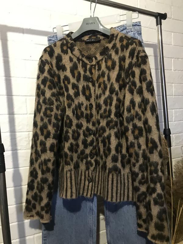 Трендова леопардова кофтинка - кардиган із мохеру та шерсті розмір , size 5 на L, хорошу М