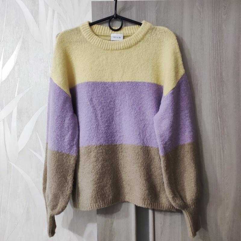 Свитер в полоску 42-44 размер Яркий женский свитер с длинным рукавом Размер XS (42-44) объёмный Акрил+ полиамид В хорошем состоянии