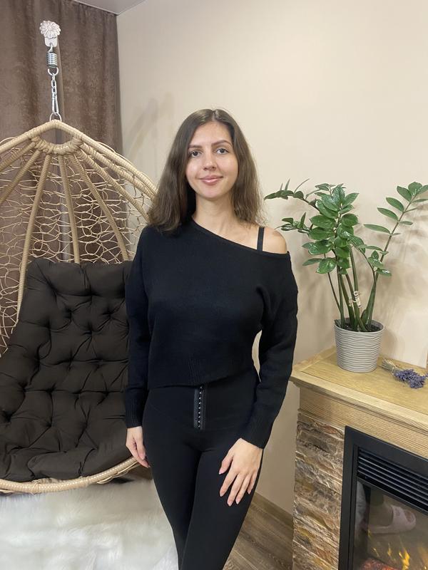 Кофта нова Одета на настройки 86/62/93, рост 173 см Замеры: Длина - мин 40 см, макс - 51 см Полуобхват груди - 58 см Тканина: 35% wool, 65% acrylic