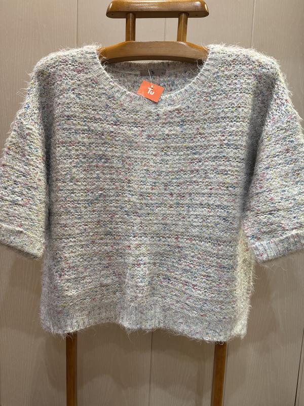 В наличии красивый свитерок фирмы TU. Размер указан 16. Состав: 75% акрил и 25% полимид...нитка очень мягенькая и приятная к телу, хорошо тянется. ПОГ-62+ещё тянется, длина-57, плечи приспущенные.. длина рукава от ворота-49, ширина по низу-56+ещё тянется.