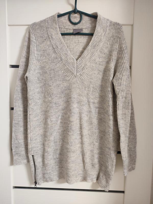 свитер теплый ,цвет светло серый ,по бокам змеечки