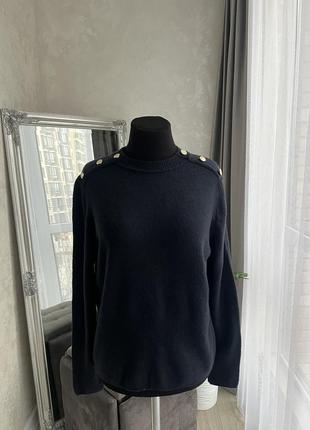 Красивый свитер от НМ😘 с изысканными пуговками Цвет - темно-синий😘 Состав: 63% акрил 25% полиамид 8% вовна 4% еластан Стан - идеальный🔥является запасная пуговка Размер М Замеры Плечи пиб 40 см Рукав от плеча 65 см Подмышками пиб 55 см Длина 61 см