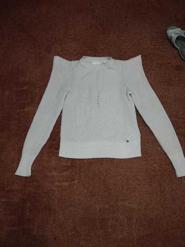 Фирменный свитер Ted baker в отличном состоянии,размер 42-44.Цвет пудра.Замеры длинна от плеча 59-60,рукав от плеча 64,пог 44.Тянется