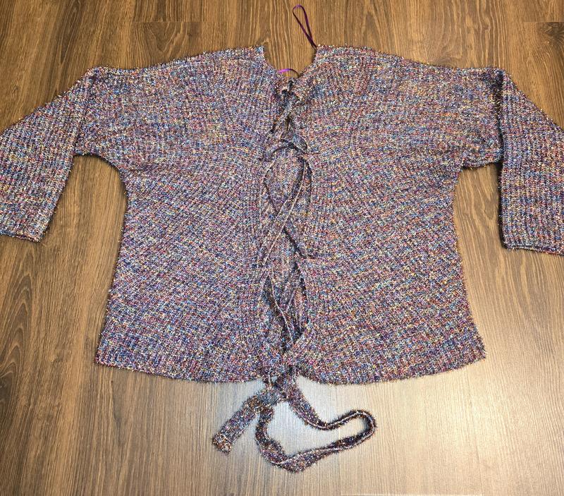 свитер очень нарядно смотрится, не колется, красивая оригинальная спинка