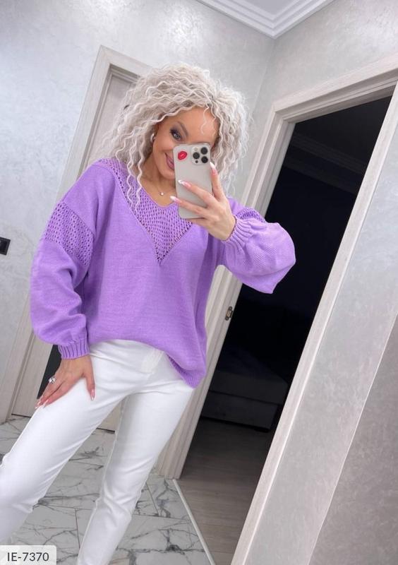 Светр IE-7360 790 грн. 48-58 Состав: 30% акрил, 70% шерсть. На ощупь очень тоненький и приятный к телу Цвета: изумрудный, Голубой, горчичный, пудра, сирень, молоко Замер: - длина рукава 70 см от горловины с плечом. - длина изделия 65 см. - ширина 58-65см. М. модель 5047
