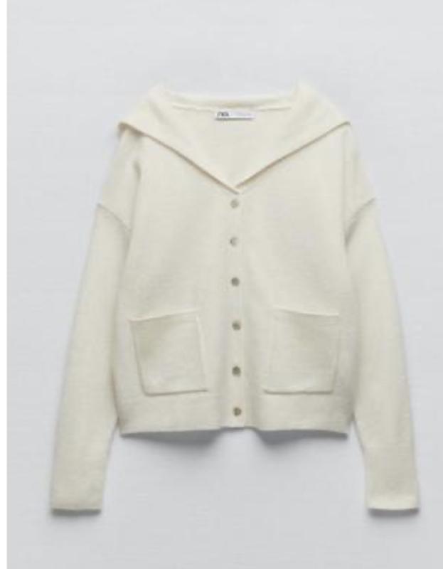 Модний кардиган молочного кольору 100% вовна. Замеры: грудь 50, длина 50, рукав от горловины 66.
