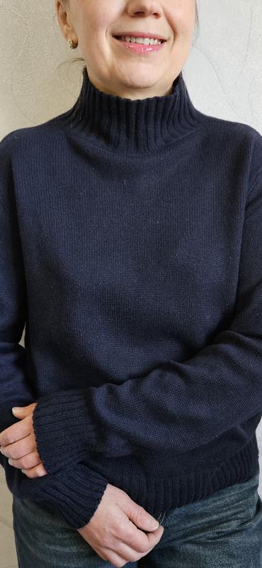 Базовый свитер, в нежном 100% кашемире от Loro Piana (1350 м/100 гр в 2 сложения). Это тонкое изделие, на теплую зиму/холодную осень (в авто, офис) ⠀ Темно-синий (navy). Размер: ширина 51,5 см, высота 58 см, рукав 61 см. ⠀ Невероятная нежность и тепло. Втачной рукав, горловина в 3 сложения (одинарная), по низу резинка провязана с эластаном. ⠀ Ручная работа, машинная вязка. ⠀ ⠀