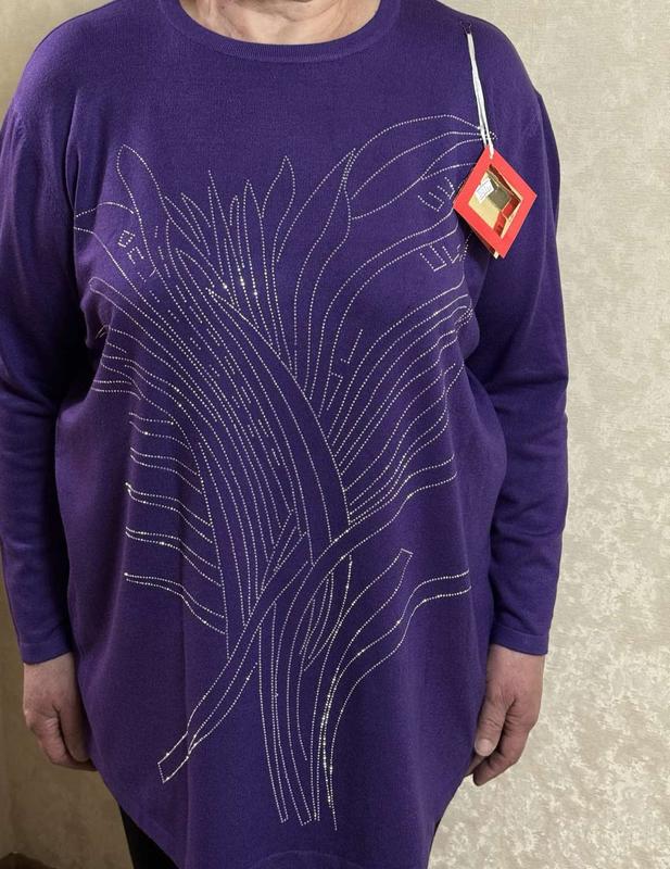 Светер женский большого размера. Светерз длинным рукавом и стразами. Кашемир.
