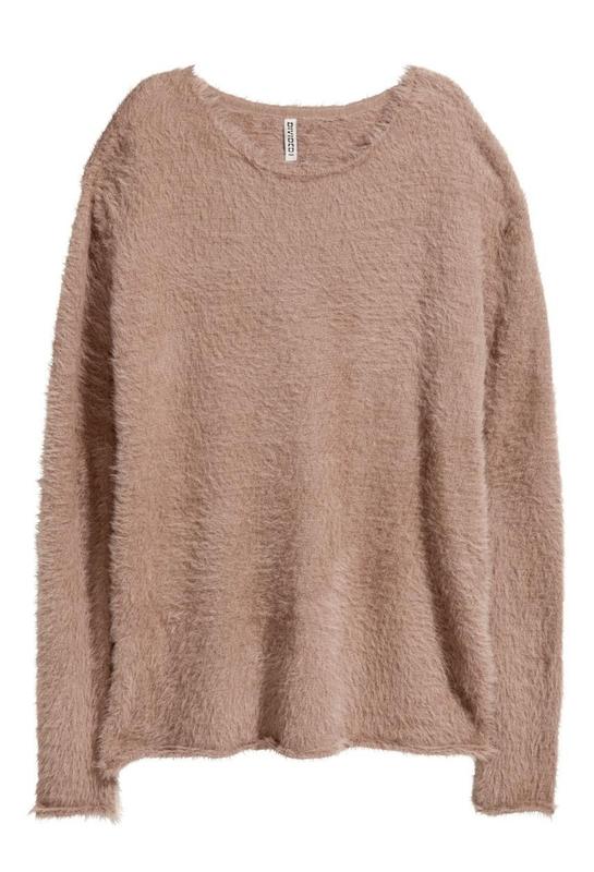 Джемпер женский H&M М Кофейный Свитер из мягкого пушистого трикотажа с закрученными краями по горловине, манжетам и подолу. Разрезы по бокам. болеемерит, или оверсайз, размер по бирке М Состав - Полиамид 100%.