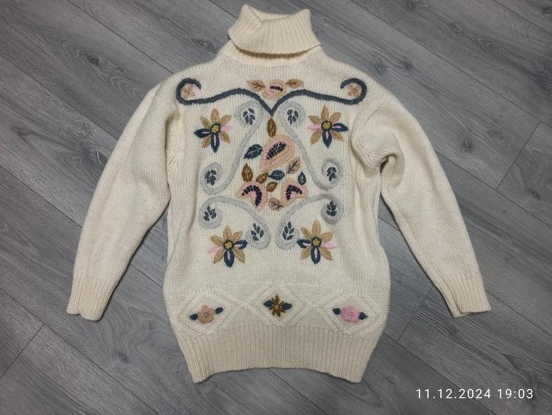 Кофта шерстяная L (90113) БУ в идеальном состоянии, без недостатков. Длина 70см. ПО плечу 53см. ПОГ 54см. ПОТ 52см. Длина рукава 48см. ПО низ 39см. Состав - 85см шерсть, 15см акрил.